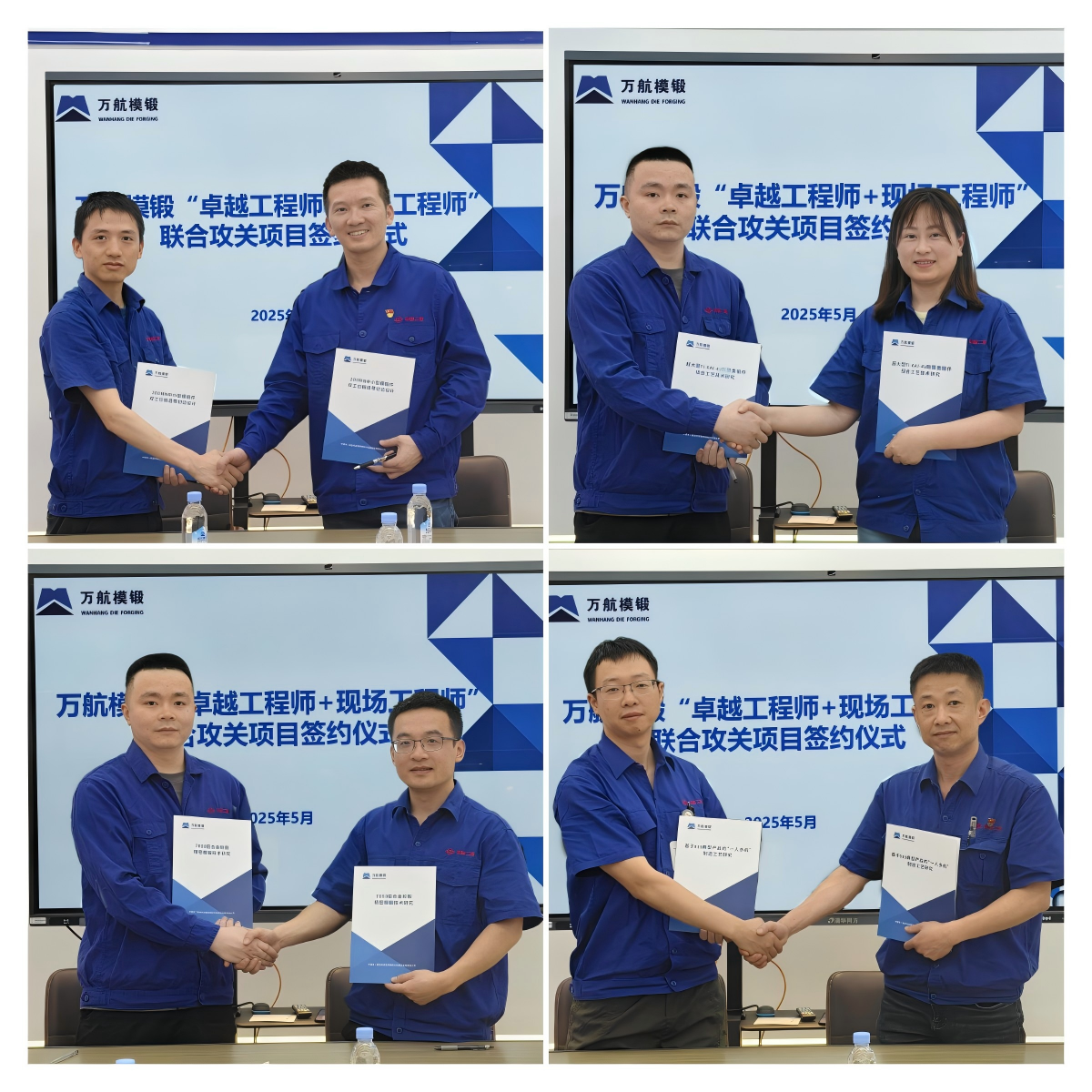 大型航空模鍛件勞模創(chuàng)新室工作室領(lǐng)銜勞模羅恒軍代表工作室對2024年工作室開展的精益設(shè)計、精益制造、人才培育成效及取得創(chuàng)新成果進(jìn)行了總結(jié),就推進(jìn)工作室2025年工作進(jìn)行了安排。工作室4名技術(shù)科研人員、4名技能人員簽約了2025年度聯(lián)合攻關(guān)項目。